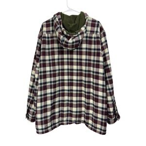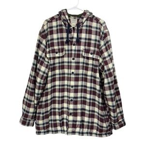 LL Bean Size XL Fleece Lined Hooded Shirt Jacket Shacket Plaid Flannel Pockets