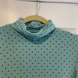 L.L. Bean Size XS Blue Red Polka Dot Long Sleeve Pullover Turtleneck Top Stretch
