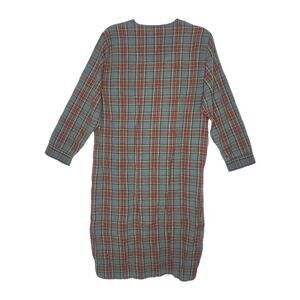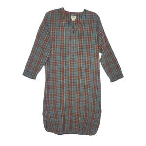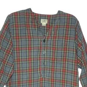 LL Bean Sleep Shirt Mens Medium Gray Red Scotch Plaid Flannel Campcore Vintage