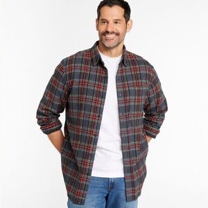 L.L. Bean Slightly Fitted Navy & Green Plaid Cotton Flannel Shirt