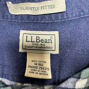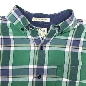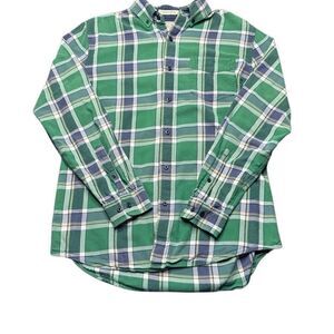 L.L. Bean Slightly Fitted Plaid Button Up Shirt Mens M Green Blue Outdoors