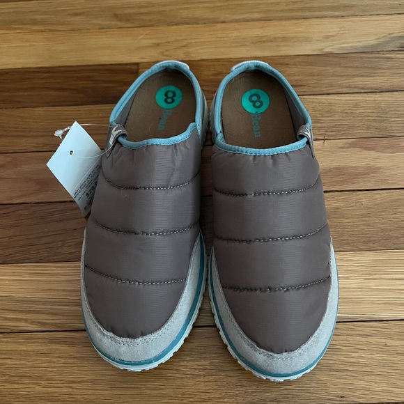 NWT. These cozy slip-on shoes for women feature a stylish blue and gray design. Perfect for everyday wear, they offer comfort and ease with their slip-on style.