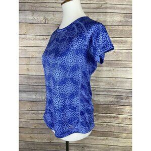LL Bean Small Activewear Top Blue Medallion Print Hidden Pocket Stretchy Wicking