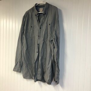 LL Bean Solid Gray Long Sleeve Button-Up Flannel Shirt XXL Tall