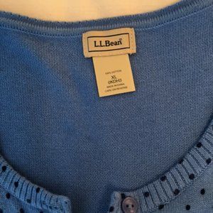This L.L. Bean spotted button down cardigan is a size XL and is made out of 100% cotton. It is 26 1/2 inches in length and has a pit to pit measurement of 22 inches. This top is in great condition with no rips, tears or stains.