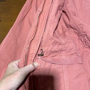 Red ,rust, salmon color. Barn style jacket. Excellent condition.