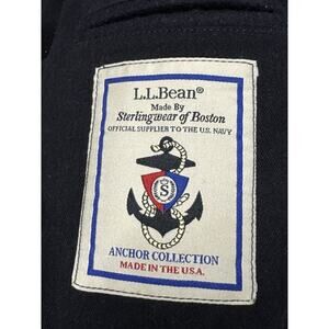 The LL Bean Sterlingwear of Boston Anchor Collection Wool Coat is a stylish and versatile outerwear piece designed for men. Made from a high-quality wool blend with a tweed fabric type, this mid-length black coat features a classic pea coat style with a pointed collar and button closure. Perfect for various occasions including travel, parties, casual wear, formal events, and business meetings, this XL-sized coat is lined with cozy nylon fleece and padded for added warmth. With a touch of vintage charm and patriotic themes, this limited edition coat is a timeless addition to any wardrobe. Made in the USA, this coat is sure to keep you comfortable and fashionable during the winter, fall, and spring seasons.