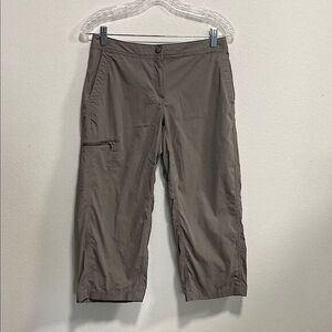 L.L. Bean Stretch Hiking Capri Pants Taupe Zip Pockets Adjustable Waist Size 6