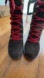 Brown women's suede with red lace-up boots. Never worn. These are beautiful boots. I prefer flats now.