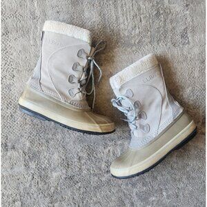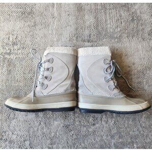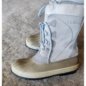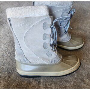 LL Bean Suede Women Size 8 Lace-Up Duck Snow Boots Felt Lined Medium Gray