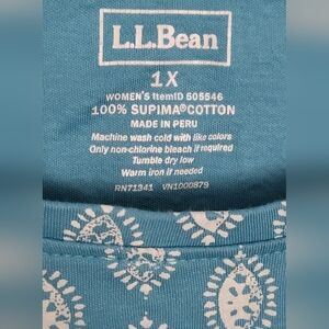 L.L. Bean Supma Cotton Printed 3/4 Sleeve Top