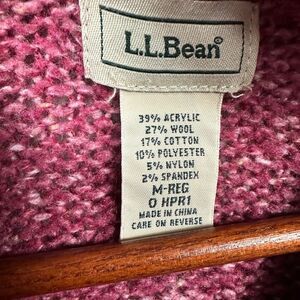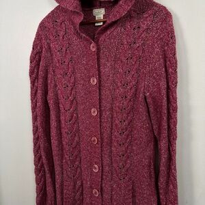 LL Bean Sweater Cable Knit Long Womens Medium Hooded Cardigan Pink Buttons Wool