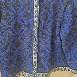 L.L. Bean Sweater Cardigan Womens 1X Blue Nordic Cotton Metal Button Front Heavy