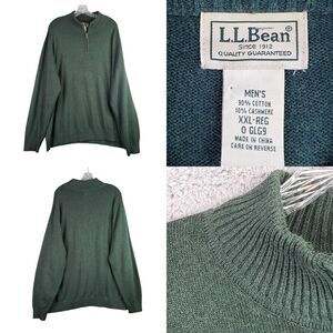 LL Bean Sweater Cashmere Cotton Pullover Quarter Zip Men’s XXL Green Chunky Knit