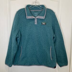 L.L. Bean Sweater Fleece Snap Neck Teal Gray Pullover Gorpcore Hiking XL Petite