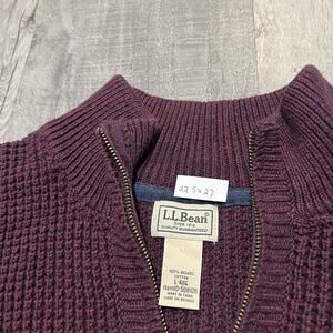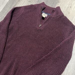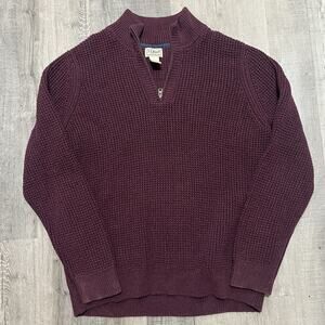 LL Bean Sweater Mens Burgundy 1/4 Zip Waffle Knit Cotton Grid Pull Over Casual
