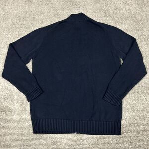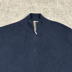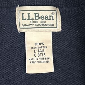 LL Bean Sweater Mens Large Tall Navy Blue Full Zip Heavy Knit Cotton