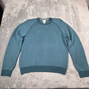 LL Bean Sweater Mens Large Teal Coolmax Blend Performance Birdseye Crewneck