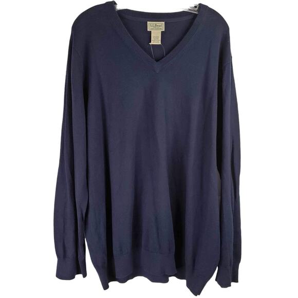 LL Bean Sweater Men’s Size XXL Navy Blue Cashmere Cotton Pullover Knit New