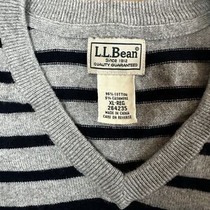 LL Bean Sweater Mens XL Grey Blue Striped Sweatshirt Jumper Grandpa Classic
