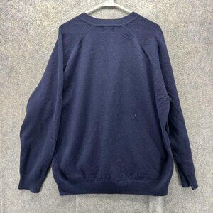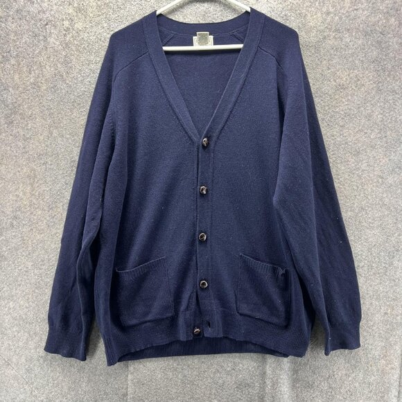 LL Bean Sweater Mens XL Navy Lambswool Cardigan V Neck Button Pockets Warm Knit