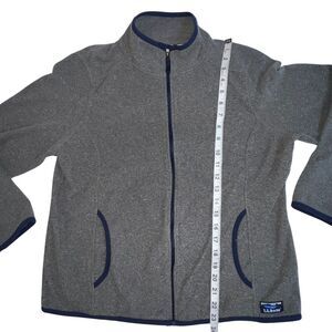 LL Bean Sweater Shirt Womens Large Gray Blue Fleece Outdoor Top Full Zip Jacket