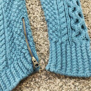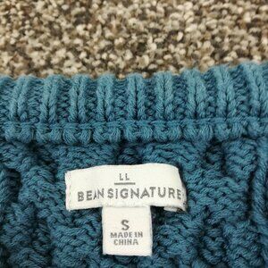 LL Bean Sweater Signature Cable Knit Fisherman Side Zip Blue Womens Small