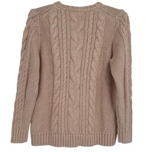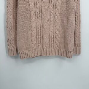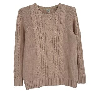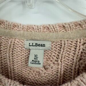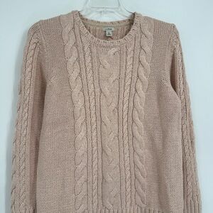 LL Bean Sweater Women Size XL Double L Cable Knit Crew Neck Cotton Blush Pink