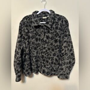 LL Bean Sweater Women XL Gray Fleece Cardigan Floral Button Up 90s Vintage