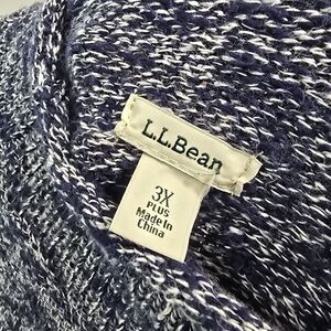 LL Bean Sweater Womens 3X Blue Roll Neck Knit Cotton Ragg Funnelneck Pullover