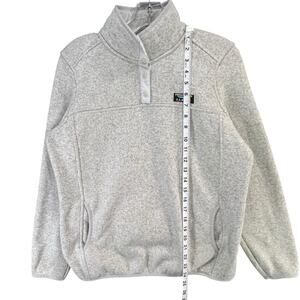 LL Bean Sweater Womens Size M Beige Fleece Pullover Snap Logo Pockets Rugged Heritage