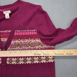 LL Bean Sweater Womens M Red Pink Fair Isle Floral Cardigan Button Front Preppy