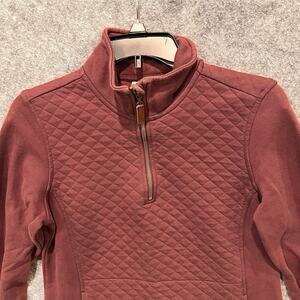 LL Bean Sweater Women’s Medium Petite Quilted Front 1/4 Zip Mauve Red Collared
