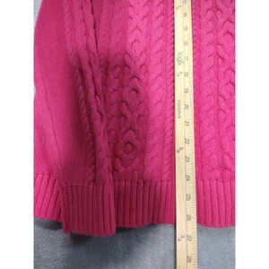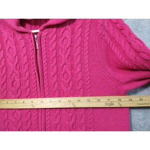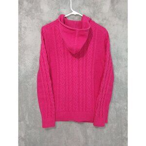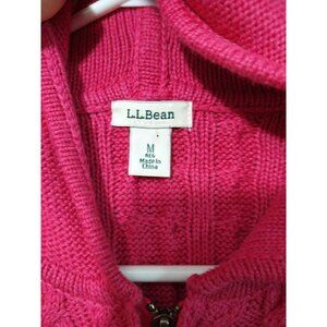 LL Bean Sweater Womens Medium Pink Cable Knit Cardigan Full Zip Hooded Fisherman