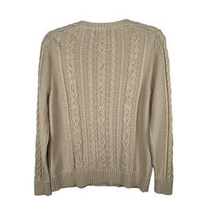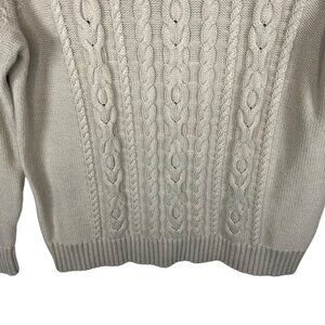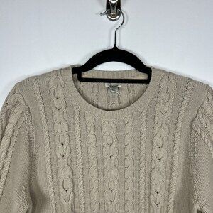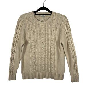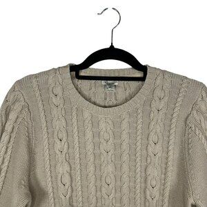 L.L. Bean Sweater Womens Petite L Ivory Chunky Cable Knit Cabin Cottage Gorpcore