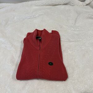 LL Bean Sweater Womens Pink L Large Mock Beck Long Sleeve Full Zip 100% Cotton