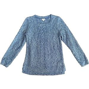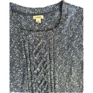 LL Bean Sweater Women's Small Blue White Marled Pullover Cotton Knit Thick Warm