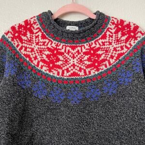 LL Bean Sweater Womens Small Gray Red Fair Isle Lambs Wool Knit Nordic Holiday