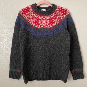 Gray Red Fair Isle Lambs Wool Sweater LL Bean Small