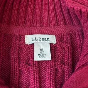 LL Bean Sweater Womens XL Dark Red Double L Cable Knit Full Zip Cardigan