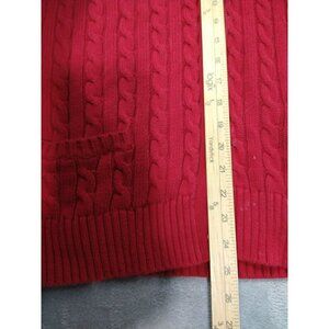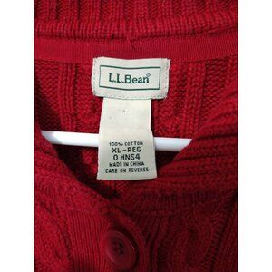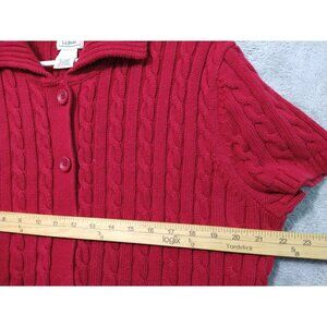 LL Bean Sweater Womens XL Red Cable Knit Cardigan Short Sleeve Cotton Fisherman