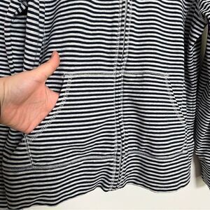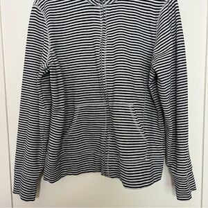 LL Bean Sweatshirt Womens Large White Blue Stripe Full Zip Stretch Outdoor Soft