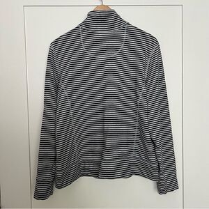 LL Bean Sweatshirt Womens Large White Blue Stripe Full Zip Stretch Outdoor Soft