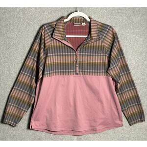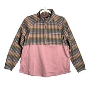 LL Bean Sz M Everyday SunSmart Woven Plaid Quarter-Zip Pullover Shirt Colorblock