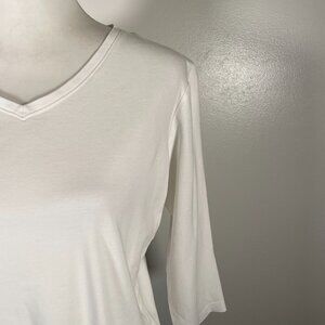 L.L. Bean T Shirt Top Women's Small Regular White Cotton Stretch V Neck Pullover