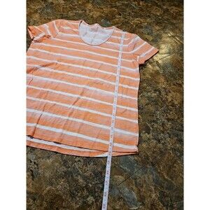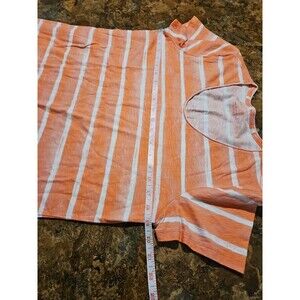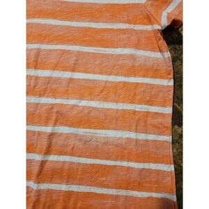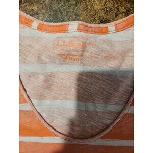 LL Bean T-Shirt Women Med. Orange Stripe Crew Neck Boxy Cotton (A198)