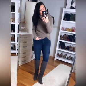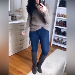 L.L. Bean Tan Taupe Marled Cowl Neck Sweater. Size medium.