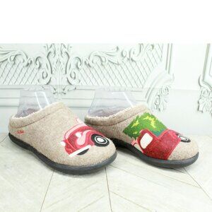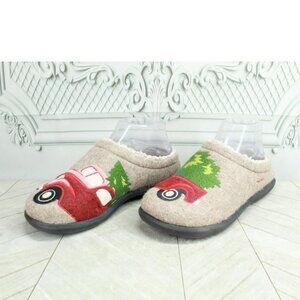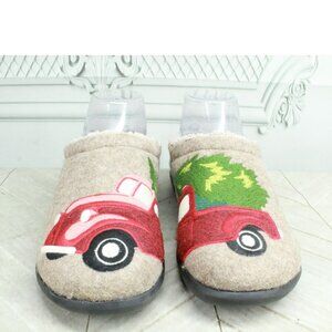 LL Bean Tan Wool Slip On Red Truck Motif Daybreak Slipper Scuffs Size 6 M