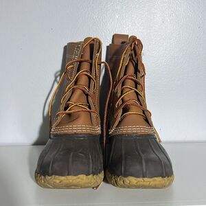 Experience the perfect blend of style and durability with L.L. Bean's tan and brown boots. Crafted for outdoor enthusiasts, these boots offer exceptional comfort and support for all your adventures. Their rugged design ensures long-lasting wear, making them an essential addition to your footwear collection.
