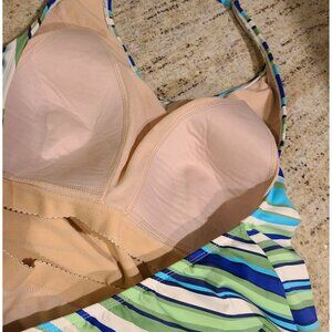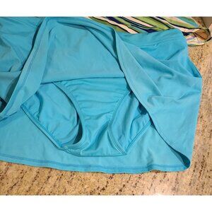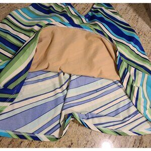 LL Bean Tankini Swim Skirt Set Plus Size 18 Blue Green Stripe Halter